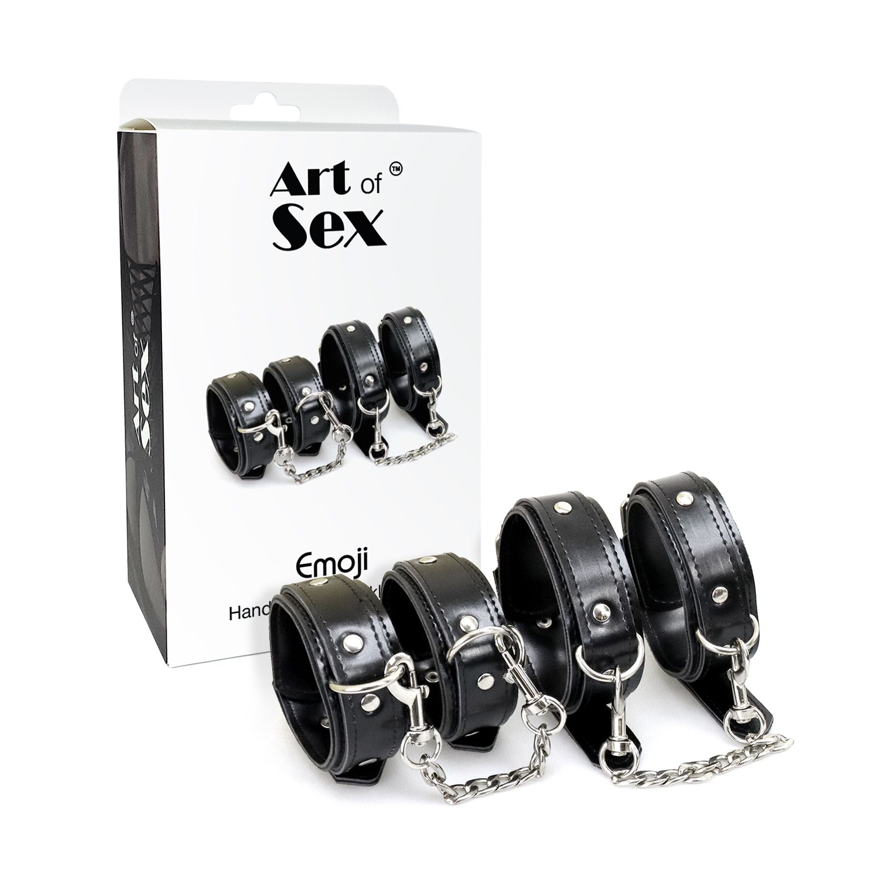 Набір BDSM Art of Sex - Emoji, наручники та поножі, екошкіра, чорний