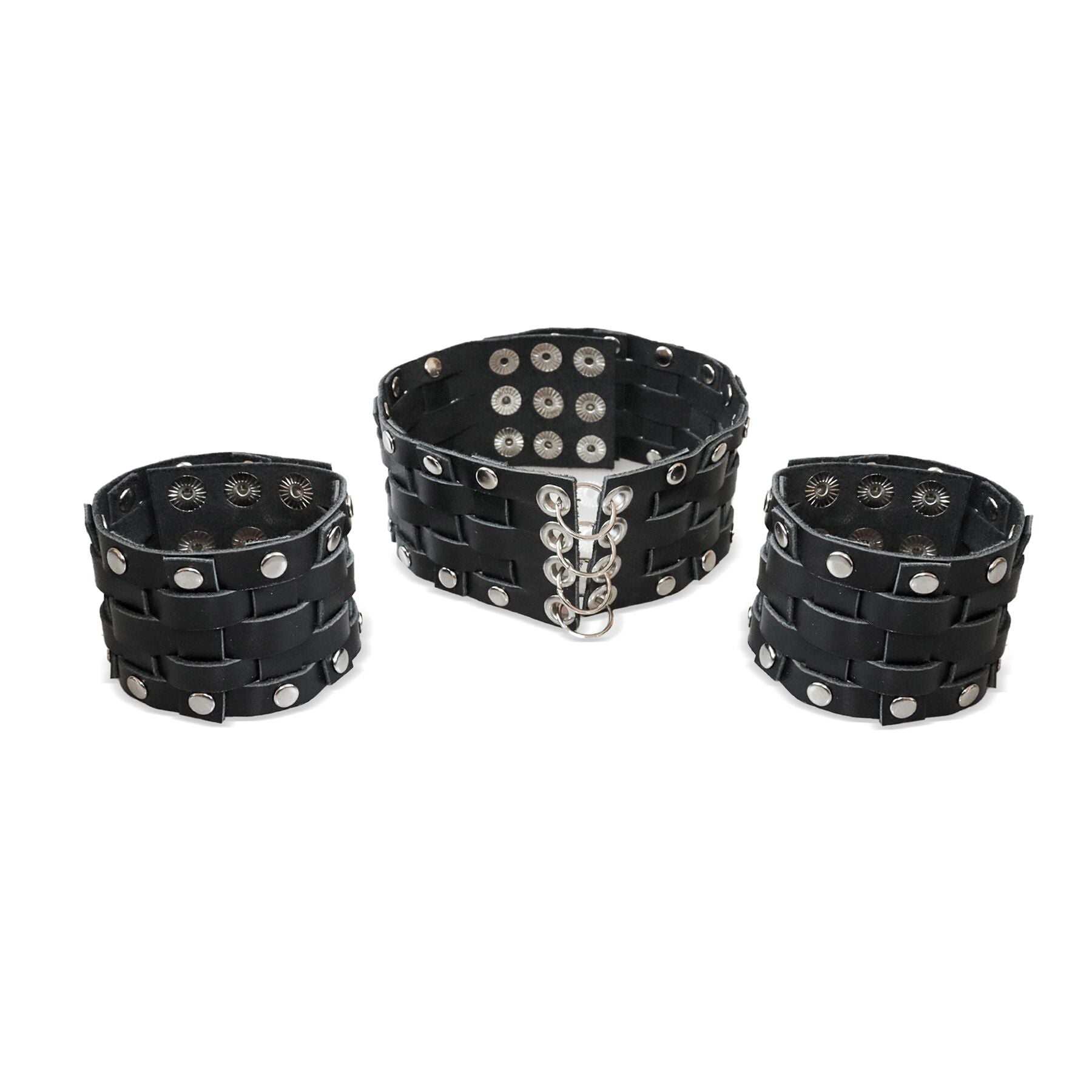З цим стильним шкіряним комплектом з чокера та прикрас для рук ви підкреслите свою унікальність та зробите вашу інтимні ігри більш цікавими та провокативними. Ці прикраси стануть доповненням до рольового костюму, або можуть вдало поєднатися з шкіряними БДСМ атрибутами для отримання не аби якого нового досвіду та приємних відчуттів.