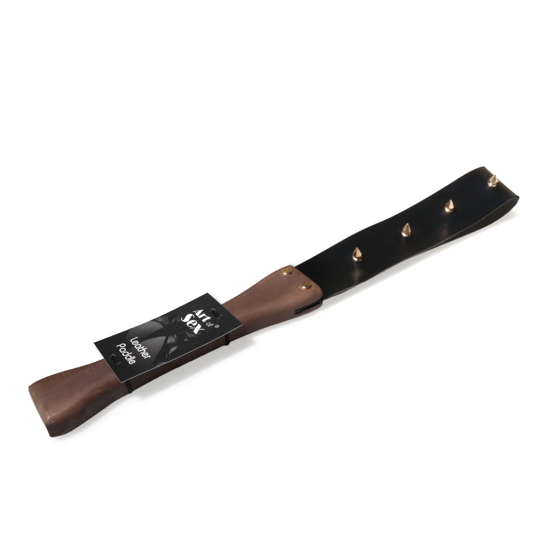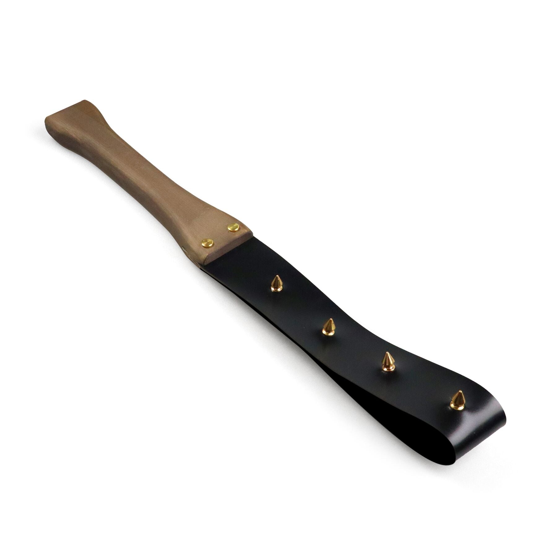Ляскалка з шипами та дерев'яною ручкою Art of Sex - BDSM Strong, натуральна шкіра