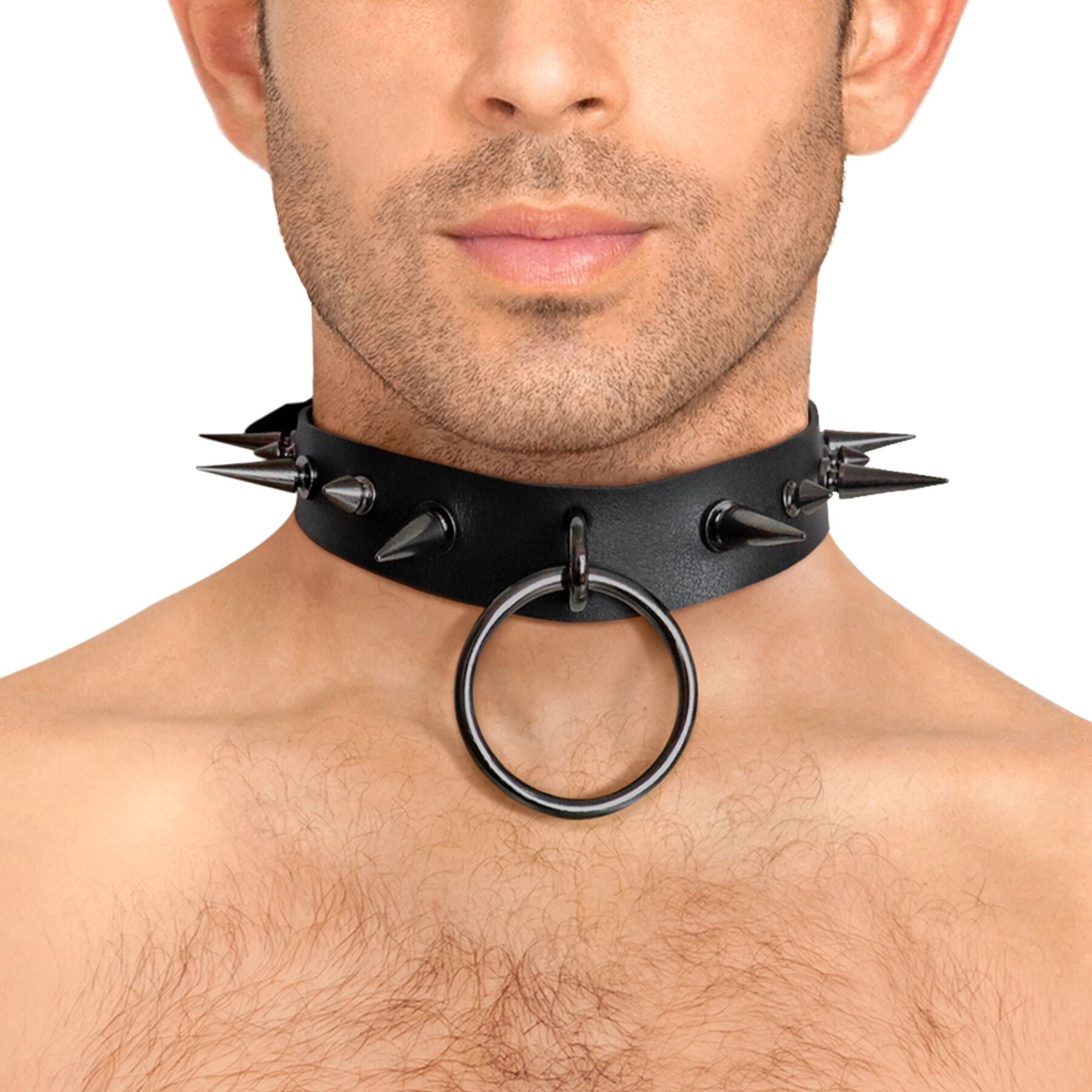 Виготовлений з високоякісної шкіри з використанням надміцної металевої фурнітури, цей нашийник поєднує в собі дизайн, зручність і ефективність. Нашийник прикрашений великим металевим кільцем, до якого можна під’єднати повідець. Така комбінація забезпечить безліч варіантів для реалізації ваших гарячих фантазій і допоможе глибше поринути у світ ігор з домінуванням та підкоренням. Також нашийник оздоблений гострими металевими шипами, які створюють відчуття небезпеки, але при цьому виглядають дуже сексуально.