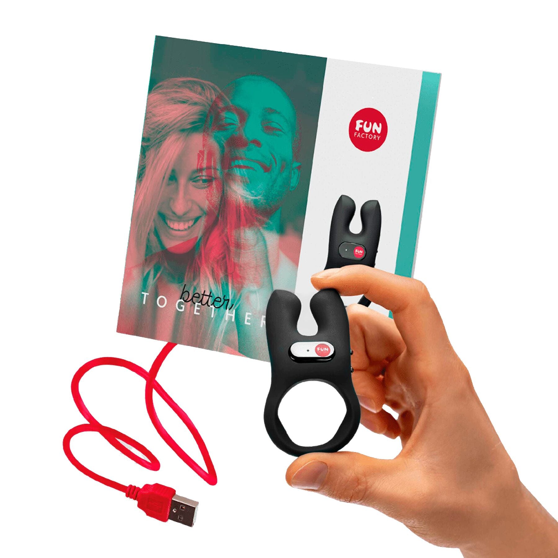 Ерекційне віброкільце з подвійною стимуляцією клітора Fun Factory NŌS black, 2 мотори