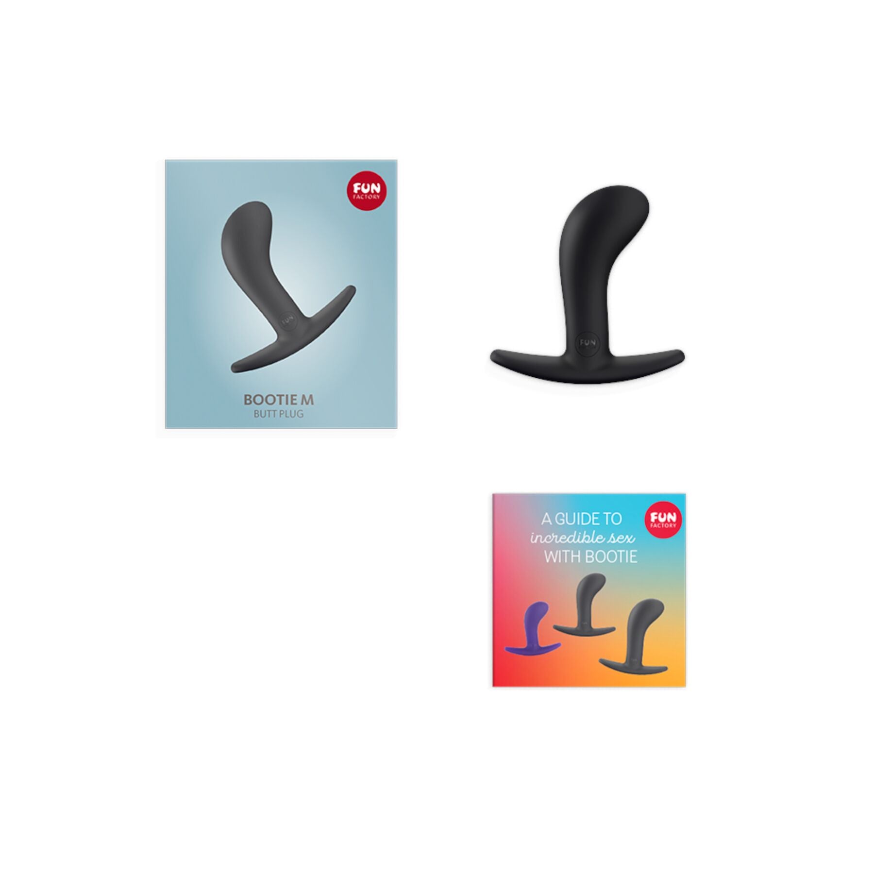 Анальна пробка Fun Factory BOOTIE виготовлена з високоякісного медичного силікону з гладенькою поверхнею. Загнутий кінчик із круглим потовщенням під час введення створює відчуття приємної наповненості: він дістає до всіх таємних чутливих точок. Чоловікам така форма сподобається тим, що головка чудово стимулює простату. А жінкам носіння BOOTIE під час статевого акту допоможе зробити стимуляцію точки G більш яскравою: іграшка «посуває» її ближче до пеніса або дилдо, тому ви отримуєте додаткову стимуляцію з кожною фрикцією. Вузька гнучка основа з тонким дугоподібним обмежувачем щільно й легко поміщається між сідницями, даючи можливість міняти пози з комфортом.
