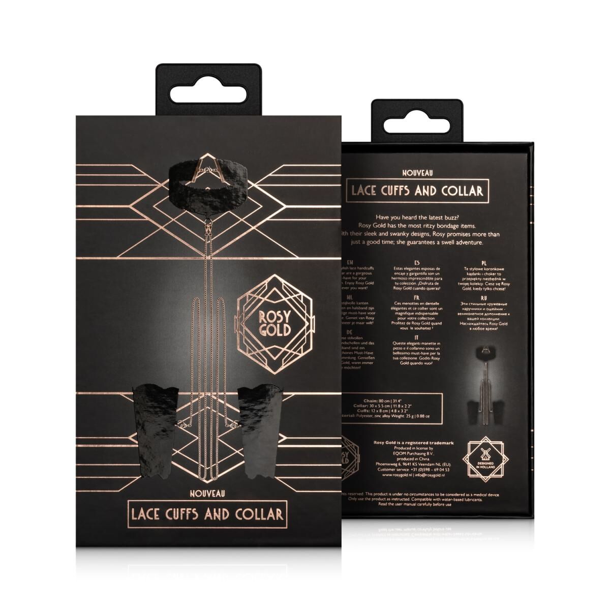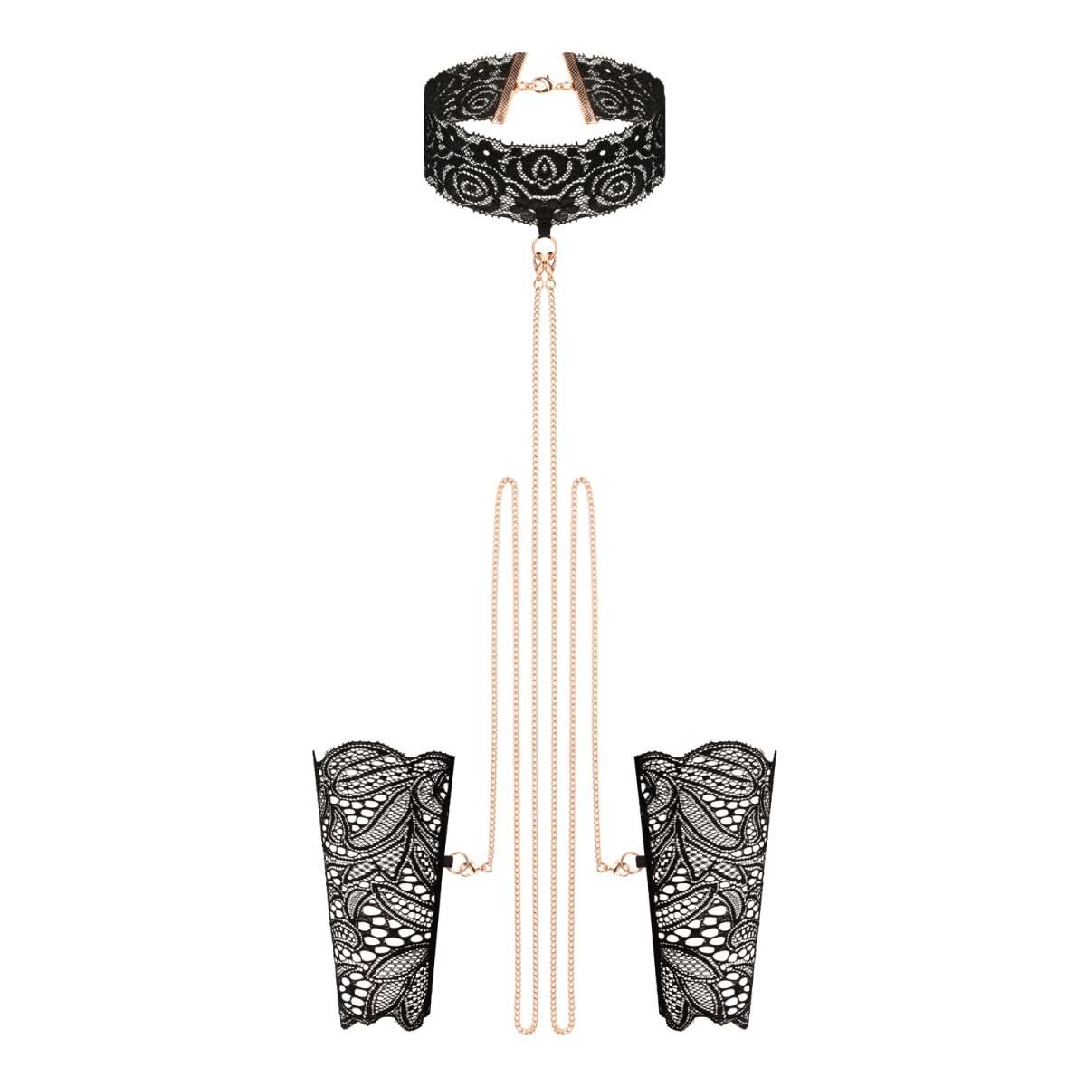 Мереживні наручники та комір Rosy Gold - Lace Cuffs and Collar - Black