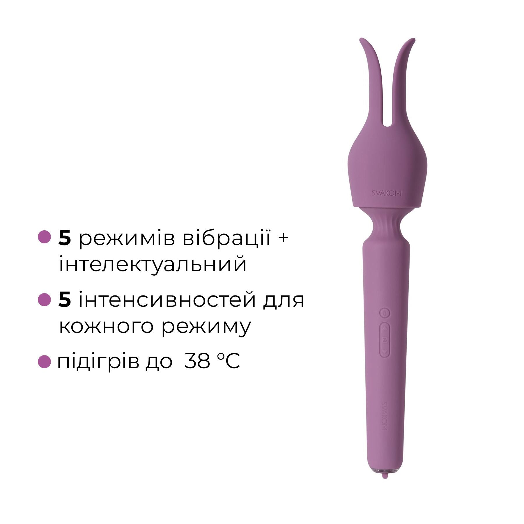 Підігрів до 38 °С, 5 режимів вібрації з регулюванням інтенсивності (по 5 для кожного режиму), а також знімна головка з гнучкими вушками надихнуть вас на нові еротичні переживання. Незвичайне LED-підсвічування для настрою: чим вища інтенсивність вібрації, тим яскравіше горить індикатор! Вібромасажером можна керувати зі смартфона, можна передавати керування на відстані, створювати в застосунку власні режими та багато іншого.