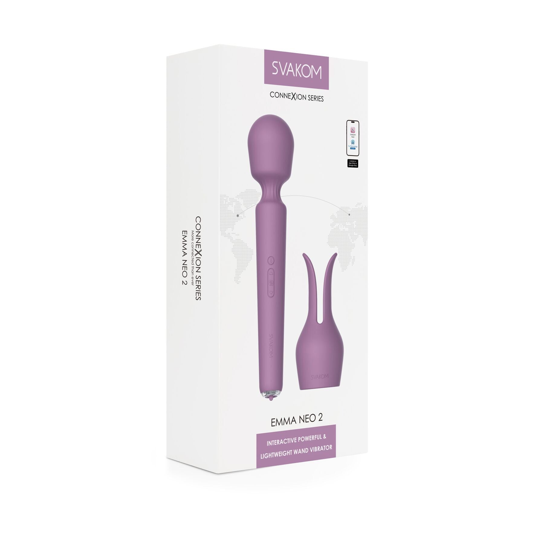 Інтерактивний вібромасажер з підігрівом Svakom Emma Neo 2 також сумісний із застосунком FeelConnect 3 для синхронізації з інтерактивним відеоконтентом і сайтом FeelPerformer.com для прямої вебтрансляції.