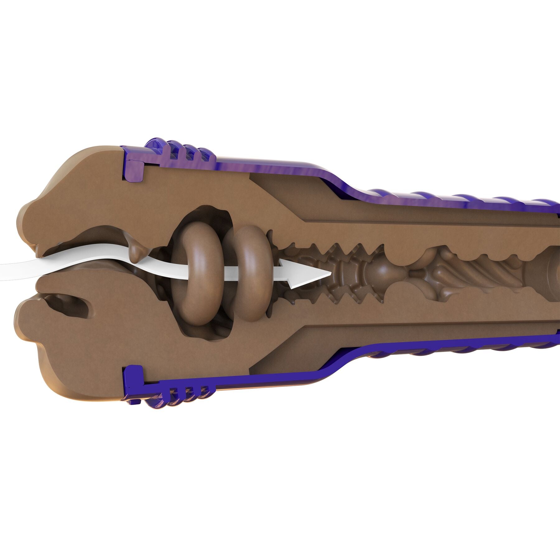 Вхід у мастурбатор виконано максимально реалістично: головка члена спочатку торкається язика й зубів, ковзає по піднебінню й злегка впирається в краплеподібний відросток — ніжний піднебінний язичок. Далі на вас чекають незвичайні враження. Плавні кільця Turbo Tech Boost Blow забезпечують інтенсивну стимуляцію, яка лише посилюється завдяки двом камерам, розташованим за ними. У першому відділі рельєф утворюють трикутні опуклості, які м’яко, але щільно стимулюють стовбур члена. Далі, у вузькому переході до другої камери, розташовані кілька великих намистин, які щільно охоплюють пеніс, забезпечуючи неймовірно приємну мастурбацію. Друга камера мастурбатора — це округлі поздовжні хвилясті ребра. Інноваційний ковпачок для контролю всмоктування дає змогу також регулювати ступінь герметичності всередині мастурбатора. Іншими словами, ви можете контролювати мінет з іграшкою, послаблюючи й розтягуючи задоволення або роблячи його більш насиченим.
