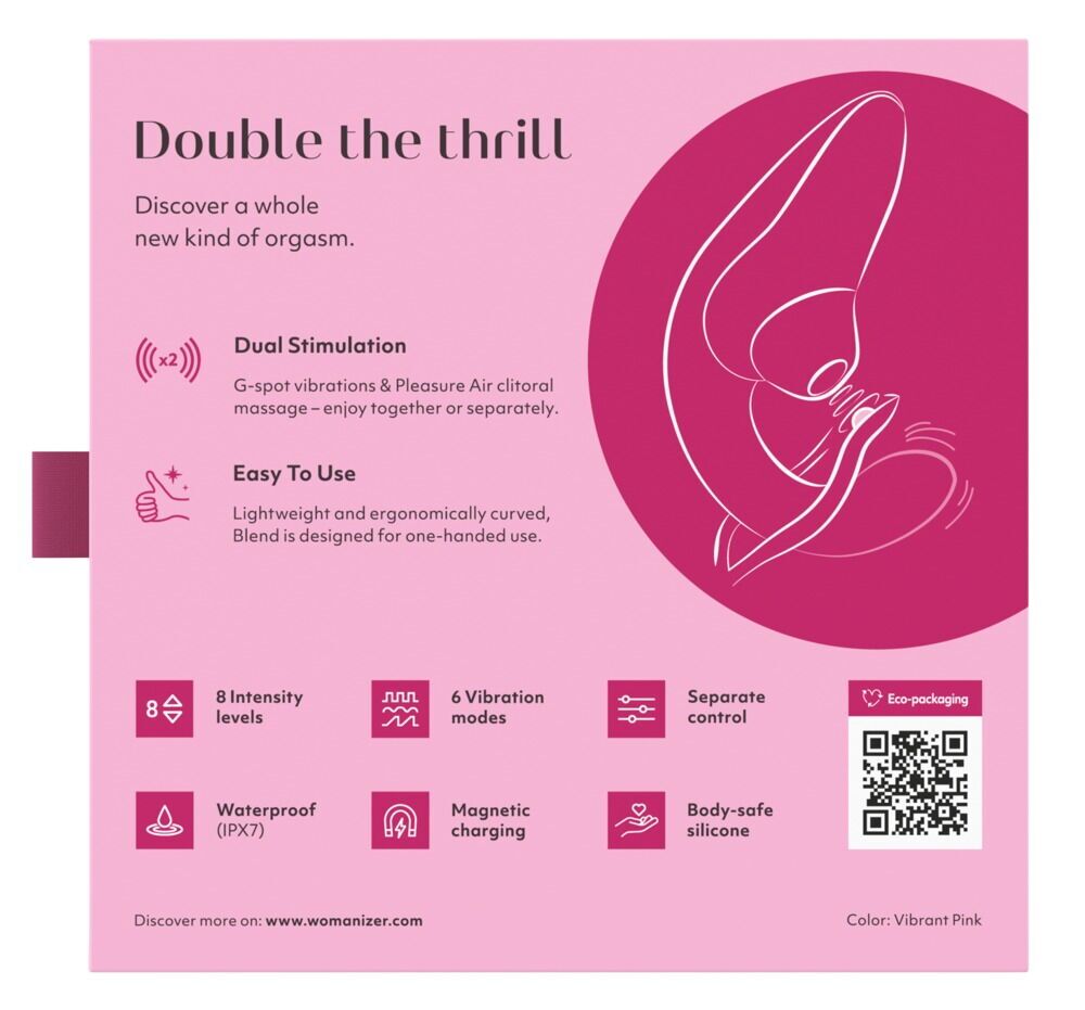 Вагінально-кліторальний стимулятор Womanizer Blend Vibrant — це ідеальний девайс для змішаних оргазмів, який точно підлаштовується під вашу анатомію і принесе небувалу насолоду.