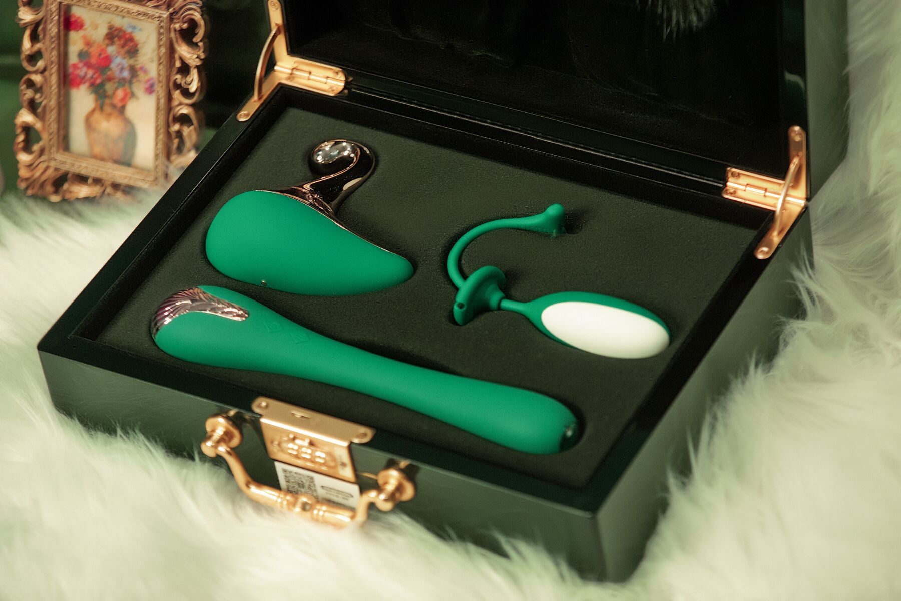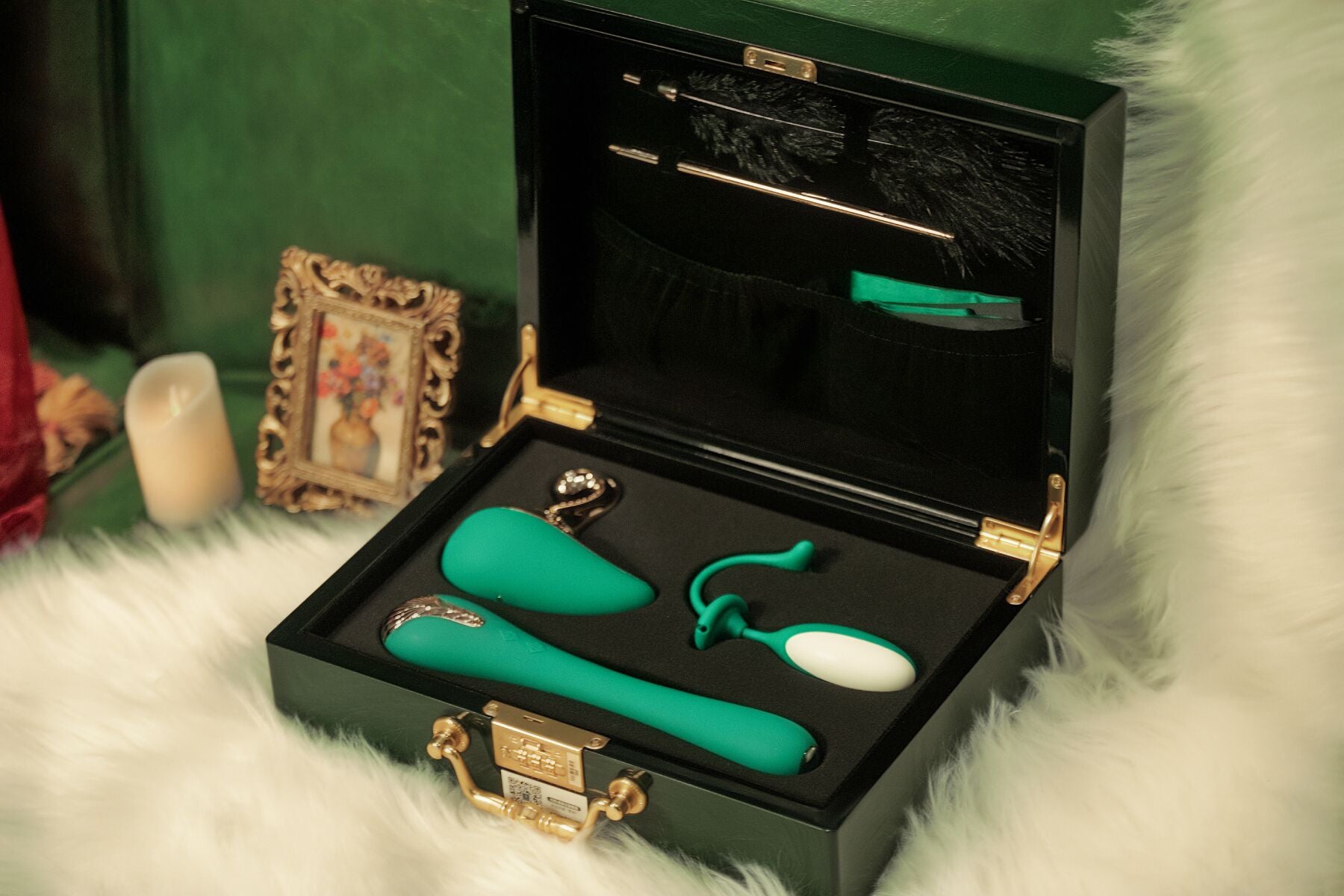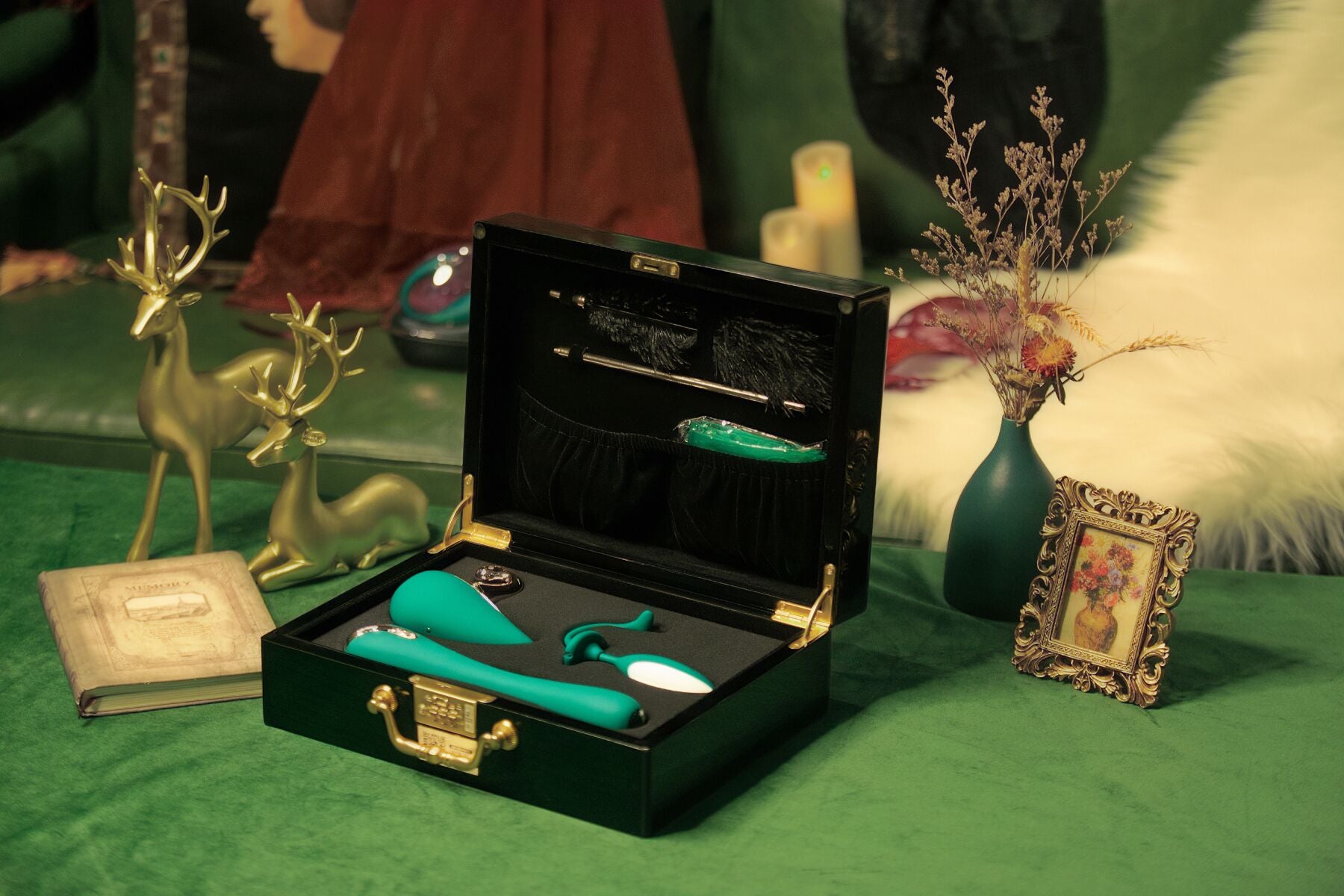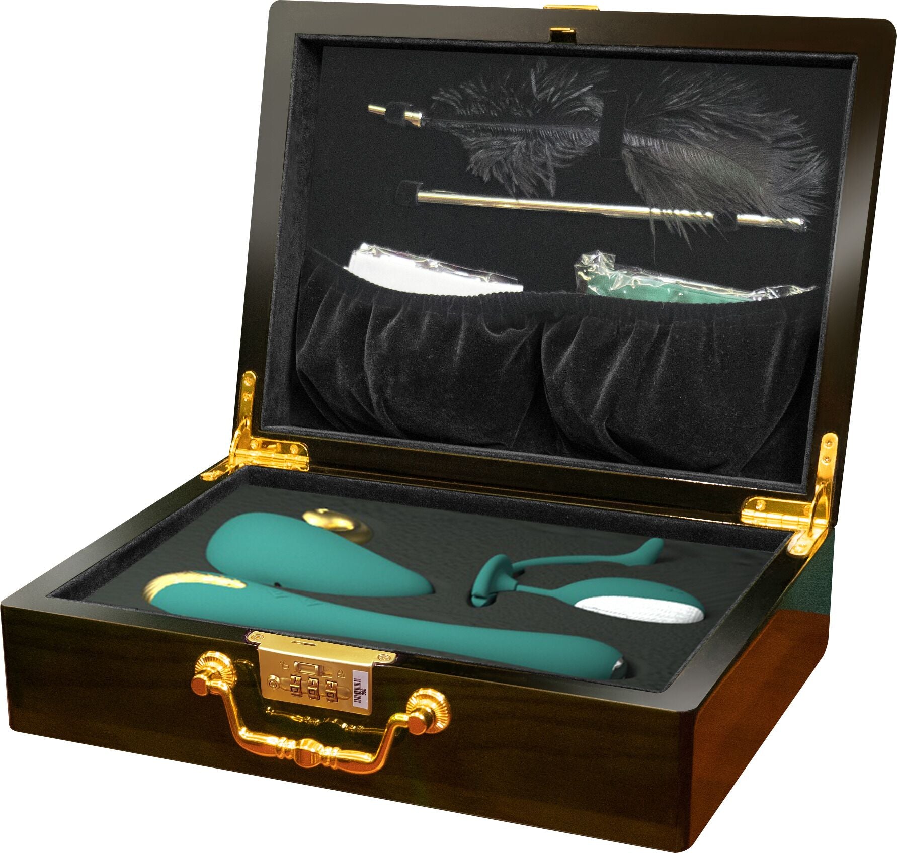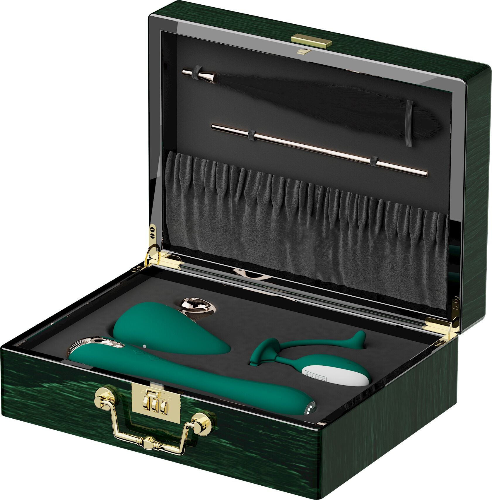 Розкіш, пристрасть, нові технології та море насолоди! Усе це ви отримаєте, якщо вирішите купити набір Knight Jenay Pandora Box, у якому є все необхідне для вишуканих задоволень і рольових ігор. Вакуумний вібратор SOUL & DESIRE у вигляді лебедя — одна з візитних карток бренду Knight Jenay, іграшка для вібростимуляції будь-яких ерогенних зон та вакуумних пестощів клітора та сосків. Вібратор з камерою True & Pure l дає змогу не тільки насолоджуватися глибокою вагінальною стимуляцією, але й детально оглядати все всередині, записувати відео та робити фото. Смарт-віброяйце Cetus із сенсором тиску — ідеальний девайс для тренувань Кегеля в ігровій формі (у застосунку доступні справжні онлайн-ігри). Також у комплекті — атласна стрічка на очі або для ніжної фіксації рук та пір’їнка-лоскітка зі знімною металевою ручкою. І все це акуратно укладено в неймовірно шикарний кейс-валізку під поліроване дерево з кодовим замком. Кейс додатково запаковано в розкішний атласний чохол смарагдового відтінку. Це справжній скарб для нескінченних еротичних пригод! Такий набір оцінять навіть найвибагливіші поціновувачі витончених пестощів та любителі інноваційних іграшок.
