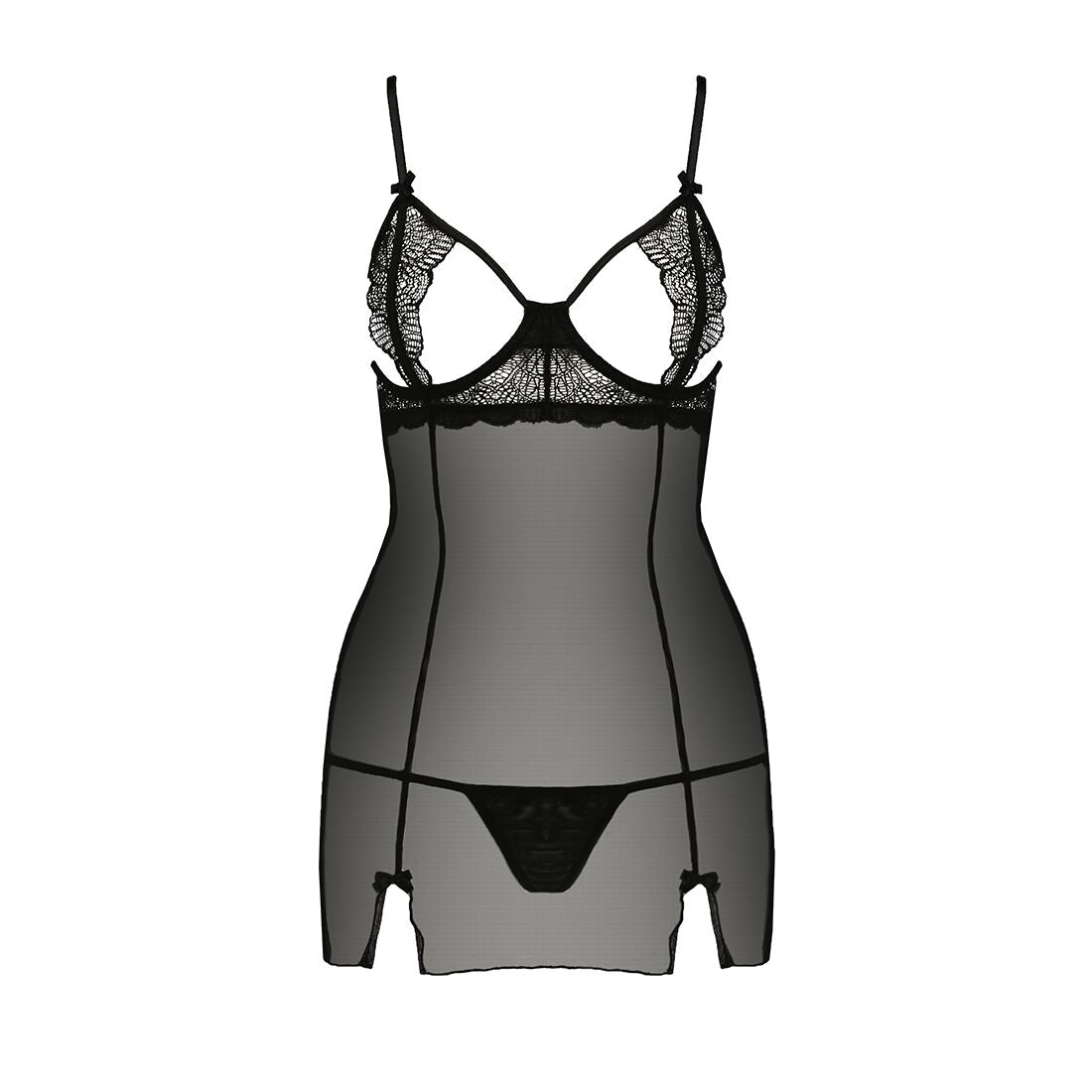 Прозора сорочка приталена Passion QUENTRIS CHEMISE L/XL, black, трусики