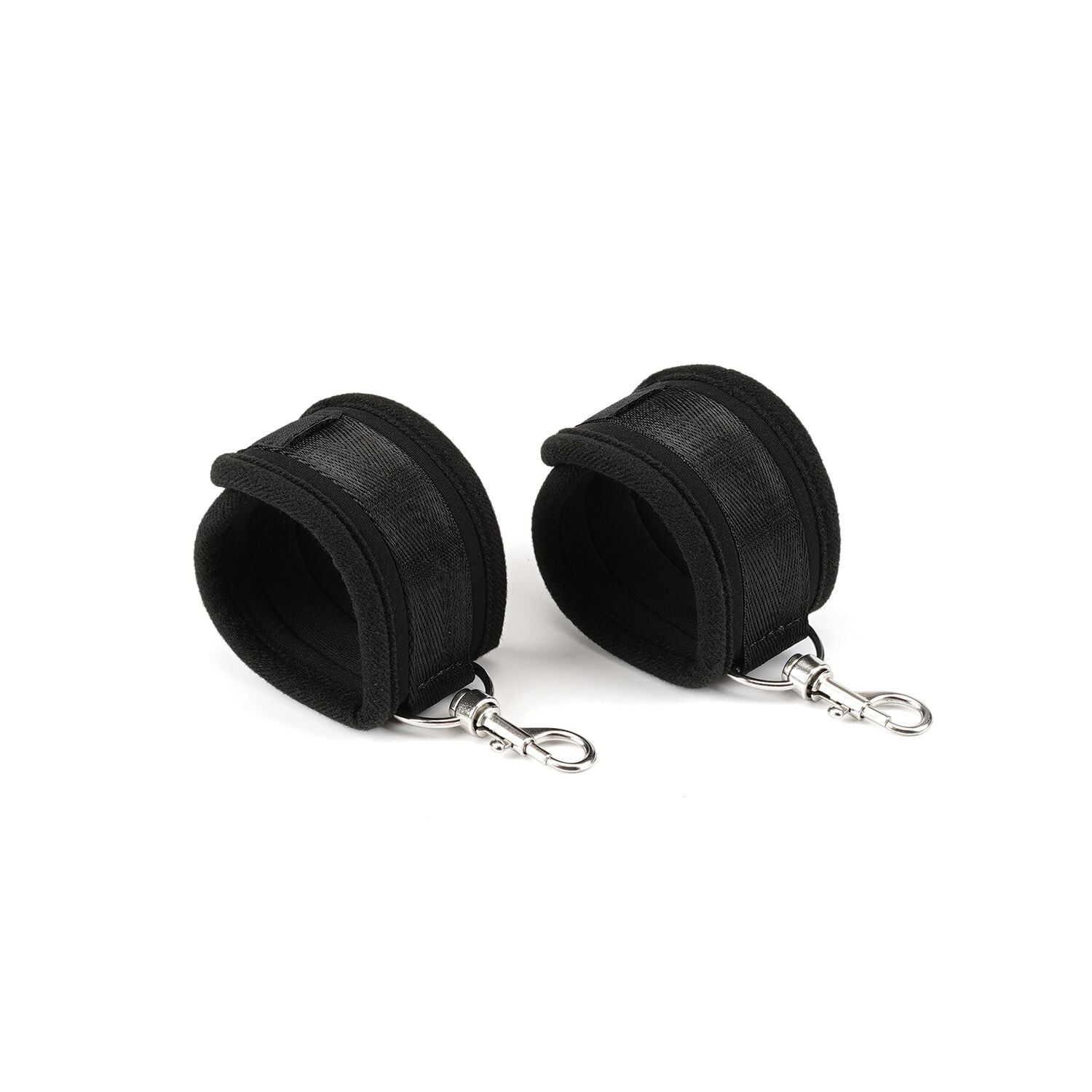 Наручники з вільним регулюванням, на липучках. Широкі та м’які, вони надійно зафіксують руки у вибраній позиції. Оснащені карабінами для з’єднання один з одним, з ногами, нашийником, повідцем і тим, чим вам заманеться. Довжина: 25 см, ширина 5,5 см.