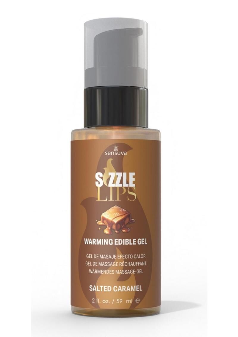 Зігрівальний гель Sizzle Lips — це особливо смачний гель на основі гліцерину рослинного походження без неприємного хімічного післясмаку з зігрівальним ефектом. Він приємно відчувається на шкірі та залишає на ній легкий аромат солоної карамелі. Вибирайте цей гель, якщо ви хочете: