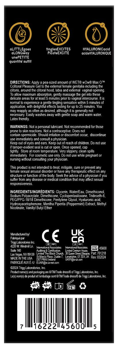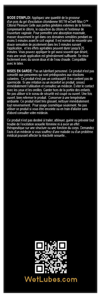 Комплексна робота активних речовин створює неймовірний збуджувальний ефект. Для підвищення інтенсивності додайте стимуляцію тертям. Збуджувальний гель для клітора Wet Wow Max O Clitoral Arousal Gel починає працювати за 30–120 секунд після нанесення (залежно від індивідуальної чутливості).